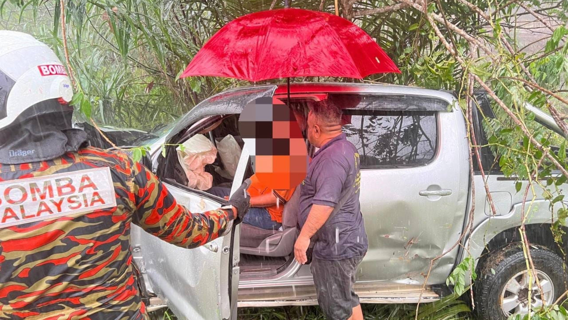 “Terdapat seorang mangsa telah dikeluarkan oleh orang awam manakala seorang lagi tersepit di bahagian pemandu dikeluarkan oleh pasukan Bomba,” katanya.