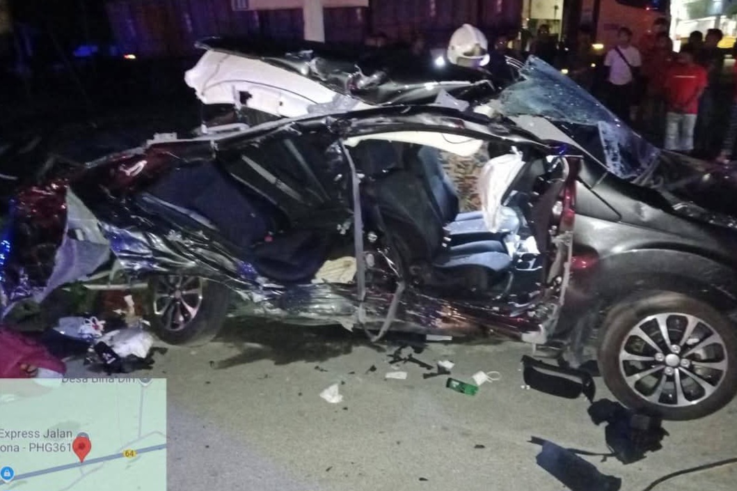 JERANTUT: Lima sekeluarga maut manakala tiga lagi cedera dalam sebuah kemalangan tragis membabitkan dua kenderaan di Jalan Jerantut Feri, di sini, awal pagi tadi.