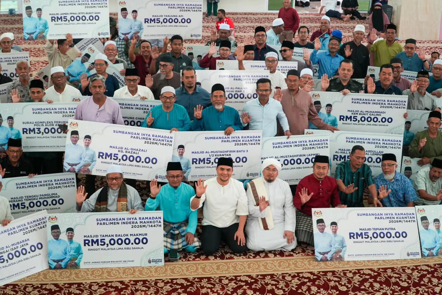 Dalam usaha menyokong peranan masjid dan surau sepanjang bulan Ramadan, Setiausaha Politik Perdana Menteri, Datuk Ahmad Farhan Fauzi menyampaikan sumbangan kepada 45 buah masjid dan surau di Parlimen Indera Mahkota serta 29 buah di Parlimen Kuantan.