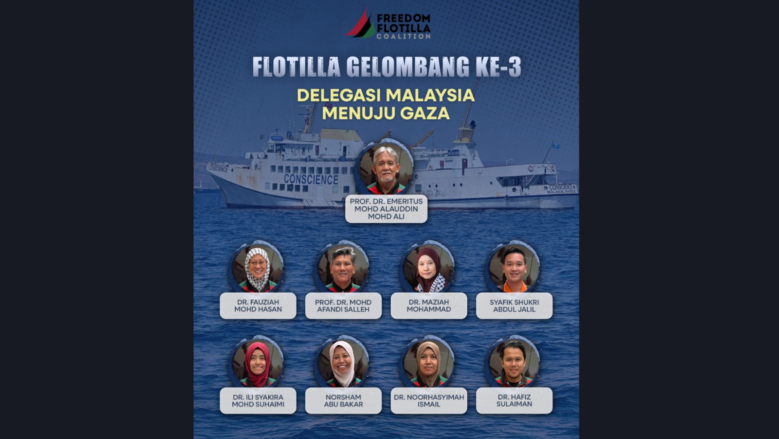 Beliau berkata, sebanyak lapan wakil Malaysia berada di Kapal Consience, manakala seorang lagi berada di atas kapal Umm Sa’ad.