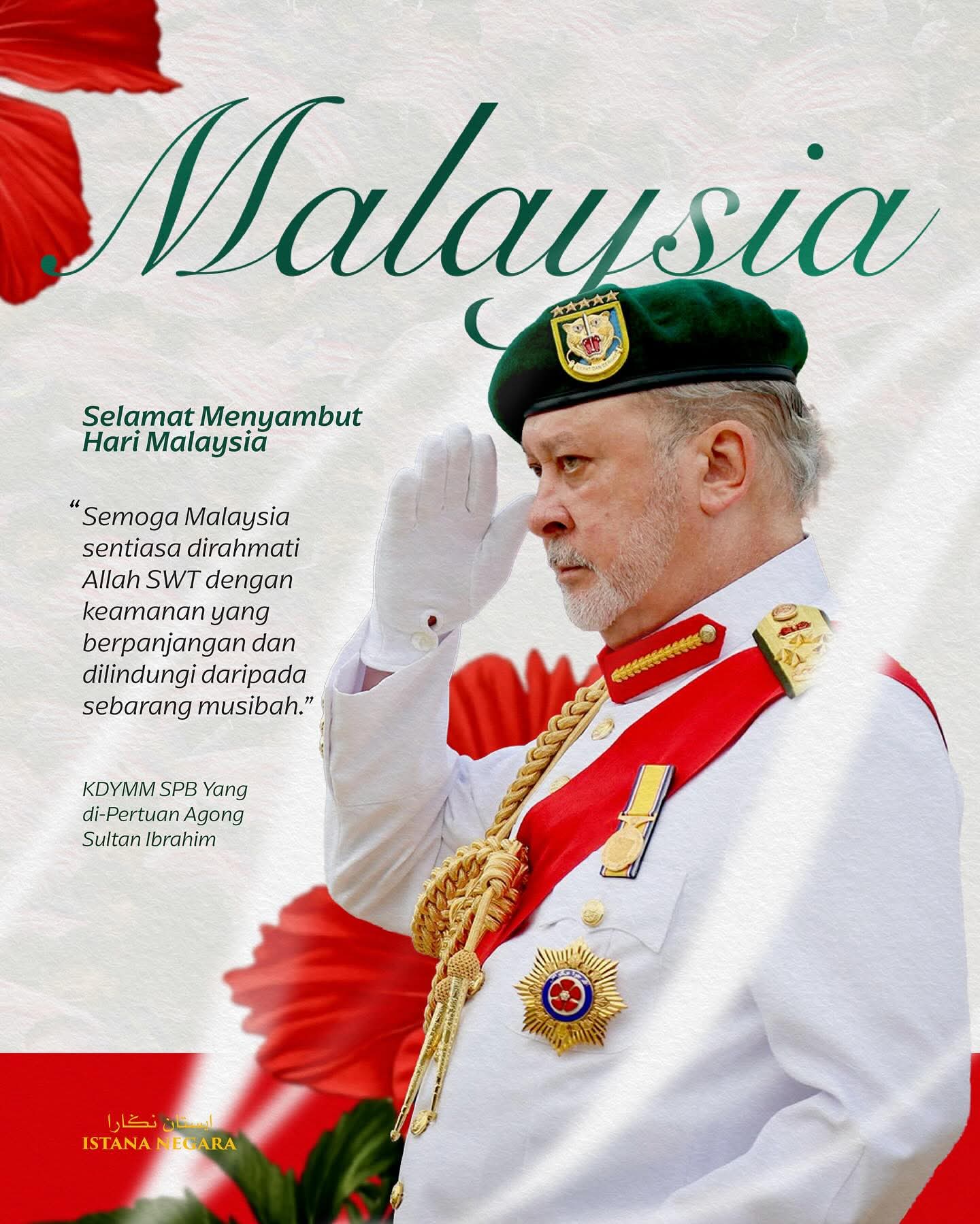 KUALA LUMPUR: Dalam semangat sambutan Hari Malaysia yang penuh makna, Kebawah Duli Yang Maha Mulia Seri Paduka Baginda Yang di-Pertuan Agong Sultan Ibrahim dan Raja Permaisuri Agong Raja Zarith Sofiah menzahirkan ucapan selamat kepada seluruh rakyat Malaysia.
