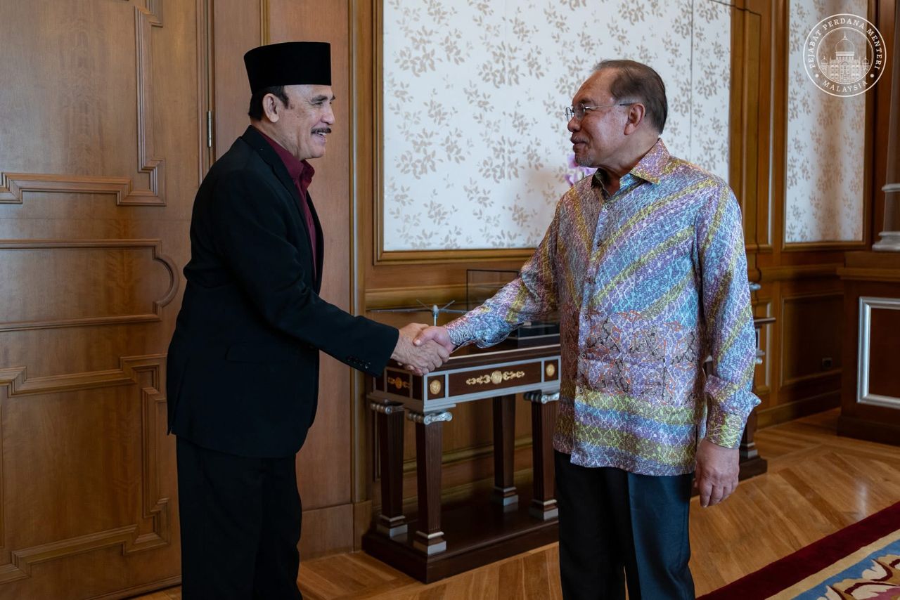 PUTRAJAYA: Perdana Menteri, Datuk Seri Anwar Ibrahim menerima kunjungan hormat Pengerusi Eksekutif Skop Productions, Datuk Yusof Haslam di Putrajaya bagi membincangkan perkembangan semasa serta hala tuju industri perfileman tempatan.