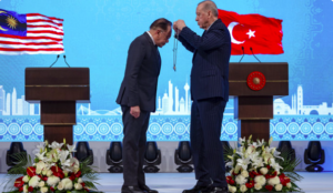 ANKARA: Perdana Menteri, Datuk Seri Anwar Ibrahim menerima penganugerahan Order of the Republic, iaitu darjah kebesaran tertinggi Turkiye, sebagai pengiktirafan terhadap sumbangan beliau dalam memperkukuh hubungan dua hala antara Malaysia dan Turkiye. Anugerah berprestij itu disampaikan oleh Presiden Turkiye, Recep Tayyip Erdogan dalam satu majlis rasmi di Kompleks Presiden sempena lawatan rasmi tiga hari Perdana … Continue reading Anwar Dianugerahkan Darjah Kebesaran Tertinggi Turkiye