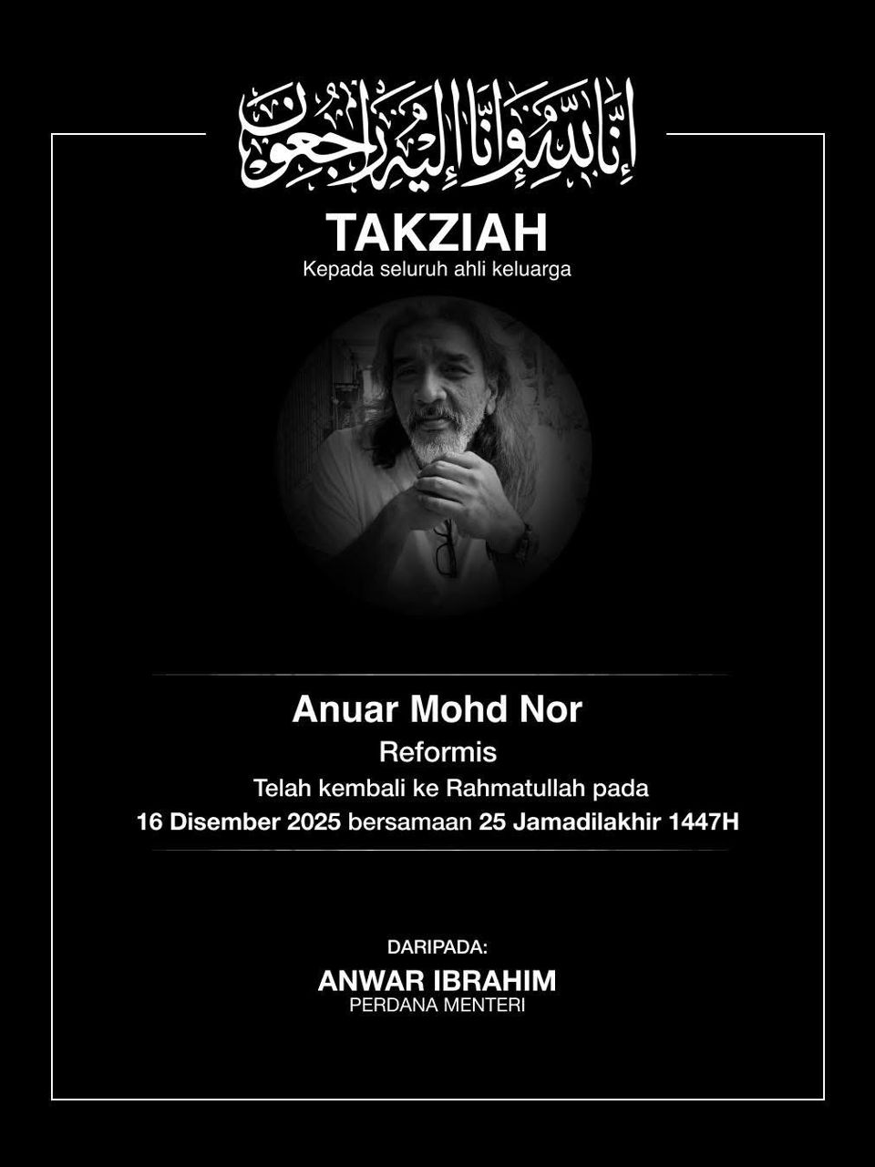 PETALING JAYA: Perdana Menteri, Datuk Seri Anwar Ibrahim menzahirkan rasa sedih dan dukacita yang mendalam atas pemergian tokoh perjuangan, Allahyarham Anuar Mohd Nor yang meninggal dunia semalam. Menurut Anwar, pemergian Allahyarham merupakan satu kehilangan besar kepada gerakan perjuangan yang selama ini berteraskan prinsip dan keberanian. “Raut wajahnya yang sentiasa tenang mengundang rasa pilu yang sukar … Continue reading Anwar Zahir Dukacita Pemergian Anuar Mohd Nor