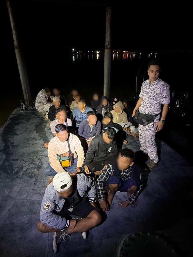 TANJUNG KLING: Sebuah bot pancung yang membawa seramai 20 pendatang asing tanpa izin (PATI) berjaya ditahan oleh Agensi Penguatkuasaan Maritim Malaysia (Maritim Malaysia) dalam operasi di perairan Tanjung Kling, malam tadi.