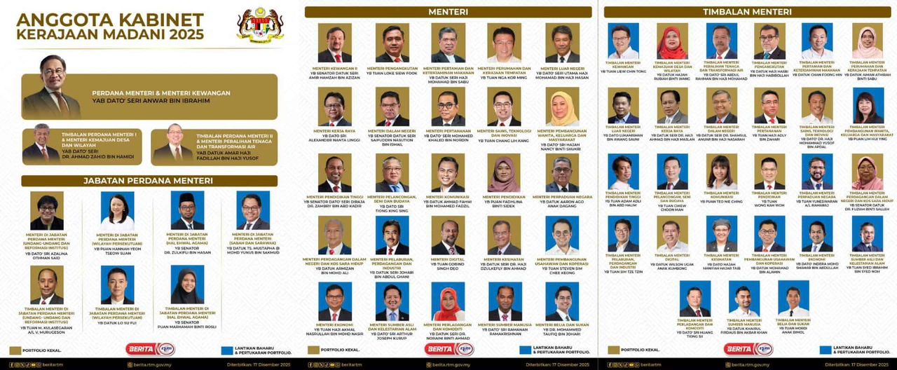 PETALING JAYA: Barisan Kabinet baharu Kerajaan MADANI menampilkan komposisi kaum yang seimbang, mencerminkan kepelbagaian masyarakat Malaysia serta memperlihatkan keterangkuman kepimpinan di peringkat tertinggi negara.