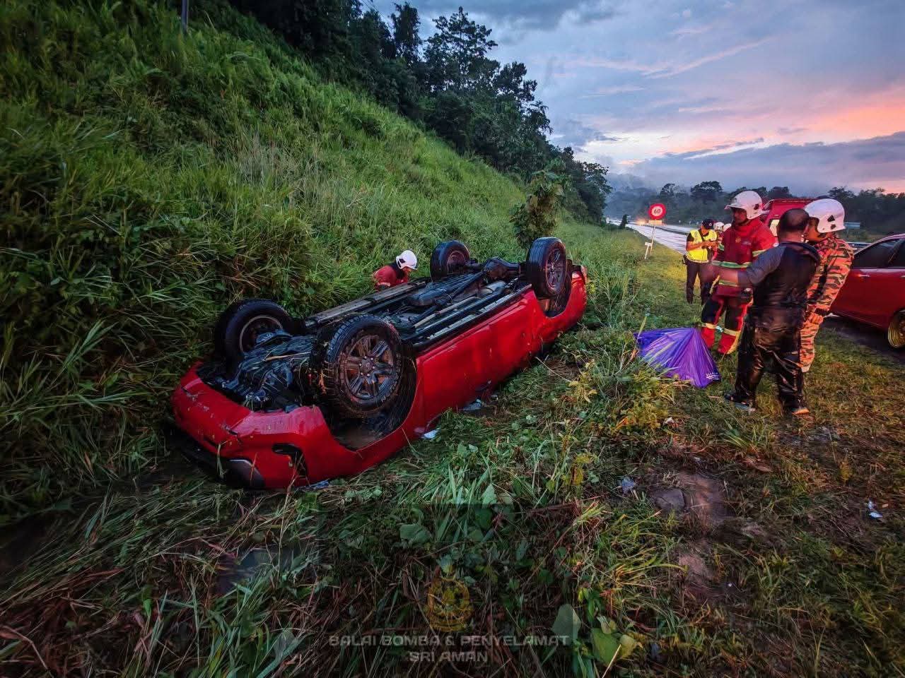Beliau berkata, ketiga-tiga mangsa berjaya keluar dari kenderaan terbalik tersebut selepas mendapat bantuan pantas dari orang awam yang berada di lokasi.