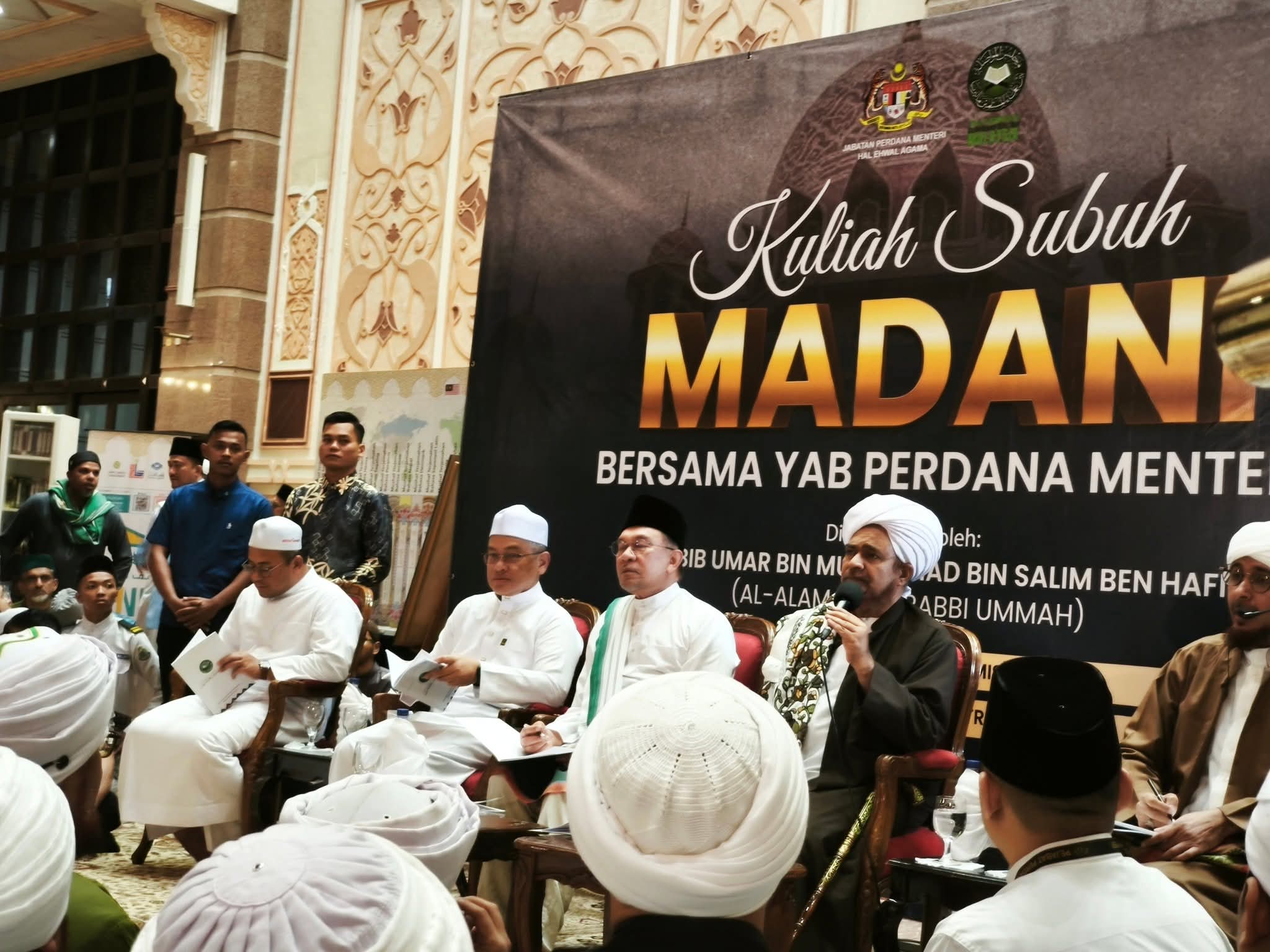 PUTRAJAYA: Kuliah MADANI yang berlangsung di Masjid Putra, Putrajaya, pagi 16 Oktober 2025, menjadi medan penyatuan apabila Datuk Seri Anwar Ibrahim bersama lebih 10,000 jemaah menunaikan solat Subuh berjemaah dan menghadiri Kuliah Subuh MADANI yang disampaikan oleh Al-Habib Umar bin Hafidz, seorang tokoh ulama tersohor dari Yaman.