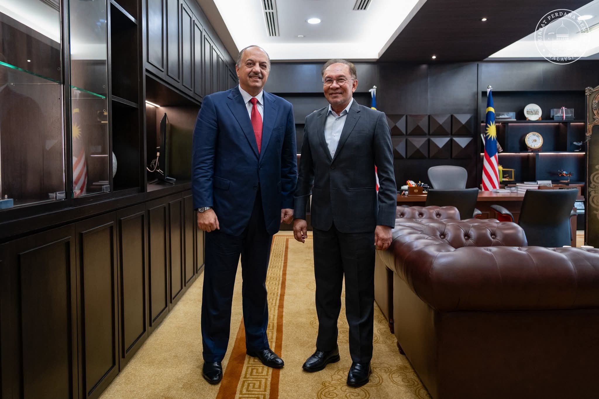 PETALING JAYA: Perdana Menteri, Datuk Seri Anwar Ibrahim menerima kunjungan hormat daripada bekas Timbalan Perdana Menteri dan bekas Menteri Luar Qatar, Khalid Mohammad Al Attiyah di Bangunan Parlimen.