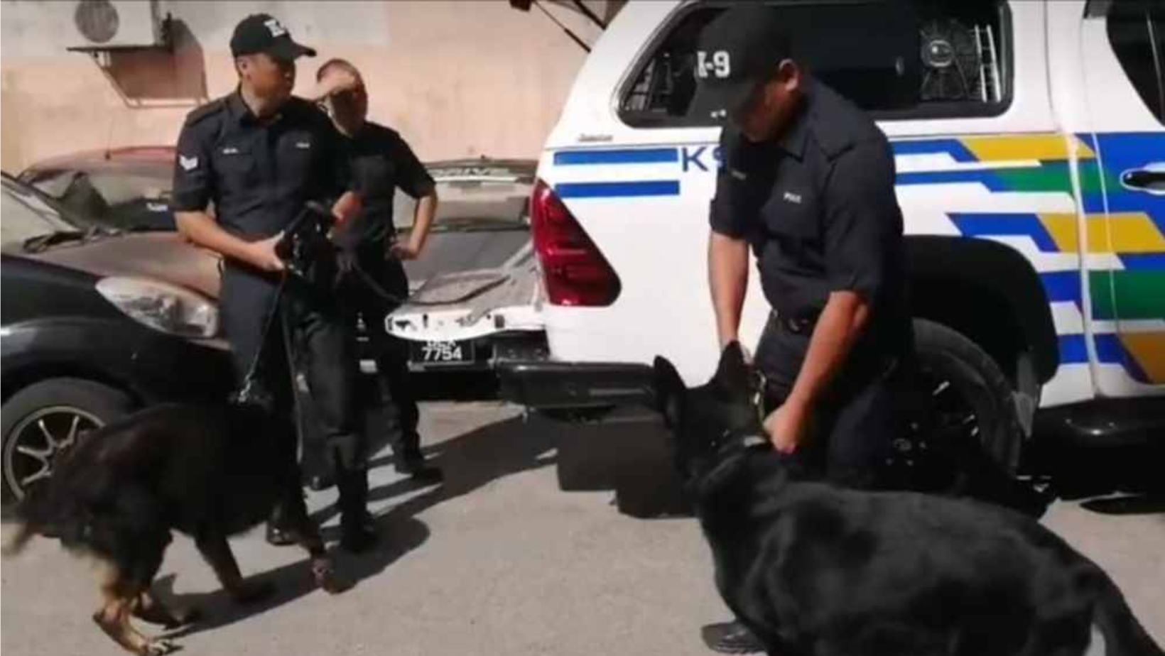 Dua unit anjing pengesan (K9), Gucci dan Ricks dibawa ke Apartment Idaman Damansara Damai, Petaling Jaya, Selangor bagi membantu pencarian bahan bukti berhubung kes kematian kanak-kanak autisme, Zayn Rayyan Abdul Matiin, 6, yang memasuki hari keempat.