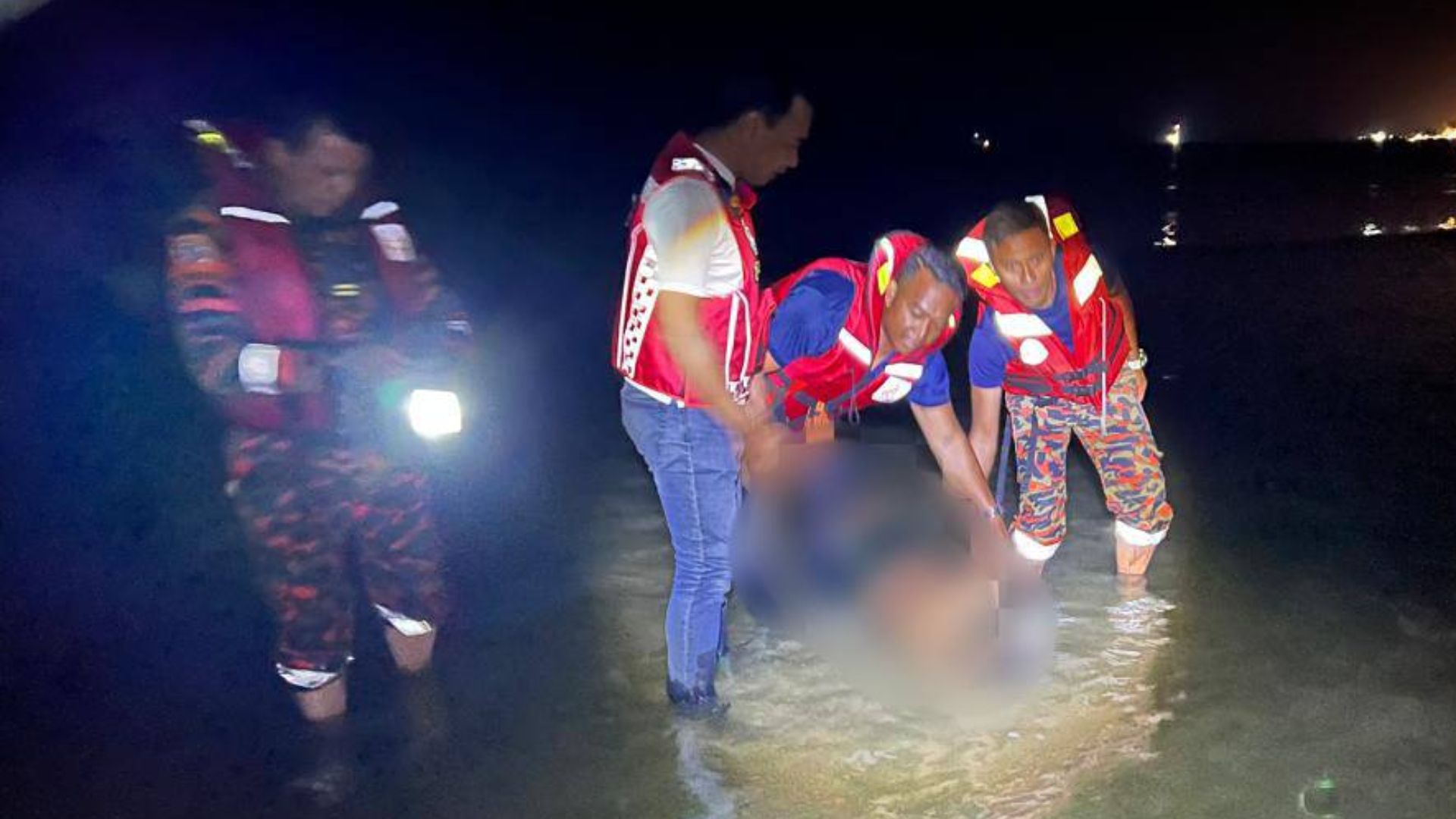 Menurut Pegawai Bomba Kanan II, Mohd Khalid Dollah, mangsa dikhuatiri lemas kira-kira 200 kaki dari pantai.
