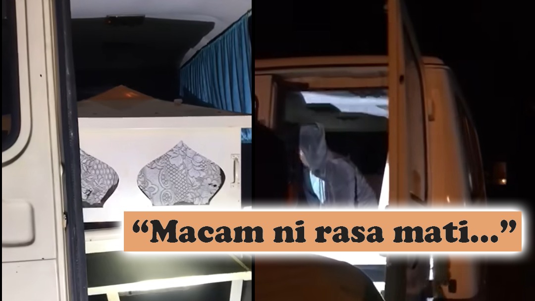 “Nak berlatih siap-siap, esok mati tak takut sangat. Macam ni mati ya, takut saya,” kata lelaki itu sambil mendengar bacaan talkin yang dipasang di dalam van tersebut.