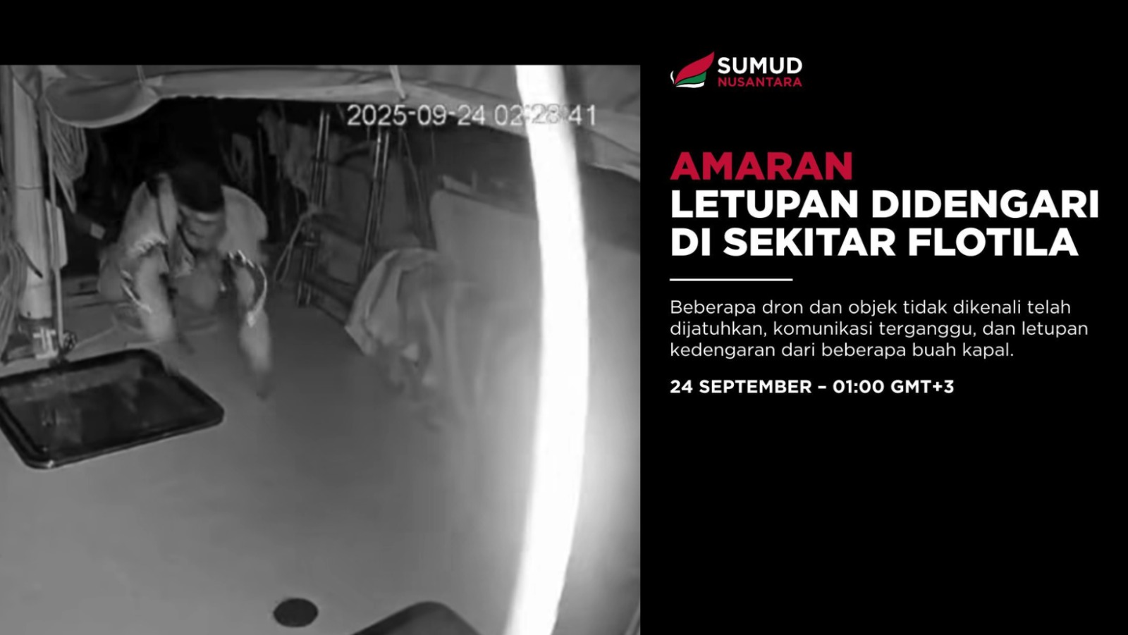 Menurut Ketua Pengarah dan Jurucakap Rasmi Sumud Nusantara Flotilla, Datuk Dr Sani Araby, sebanyak 15 dron asing dilaporkan berlegar rendah setiap 10 minit, menunjukkan cubaan intimidasi yang berterusan terhadap misi kemanusiaan tersebut.