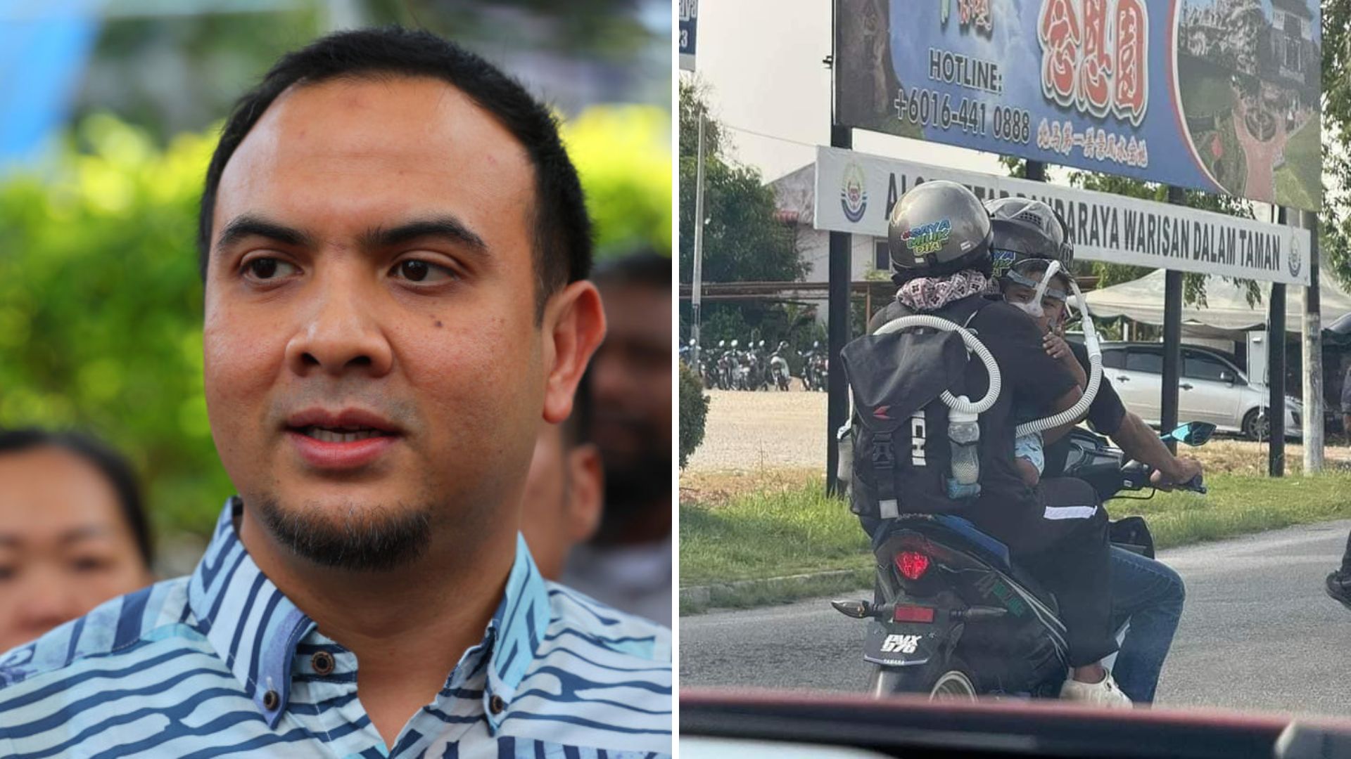 Terdahulu, tular di laman sosial gambar satu keluarga yang menaiki motosikal di samping si ibu mengendong anaknya yang memakai alat bantuan pernafasan.