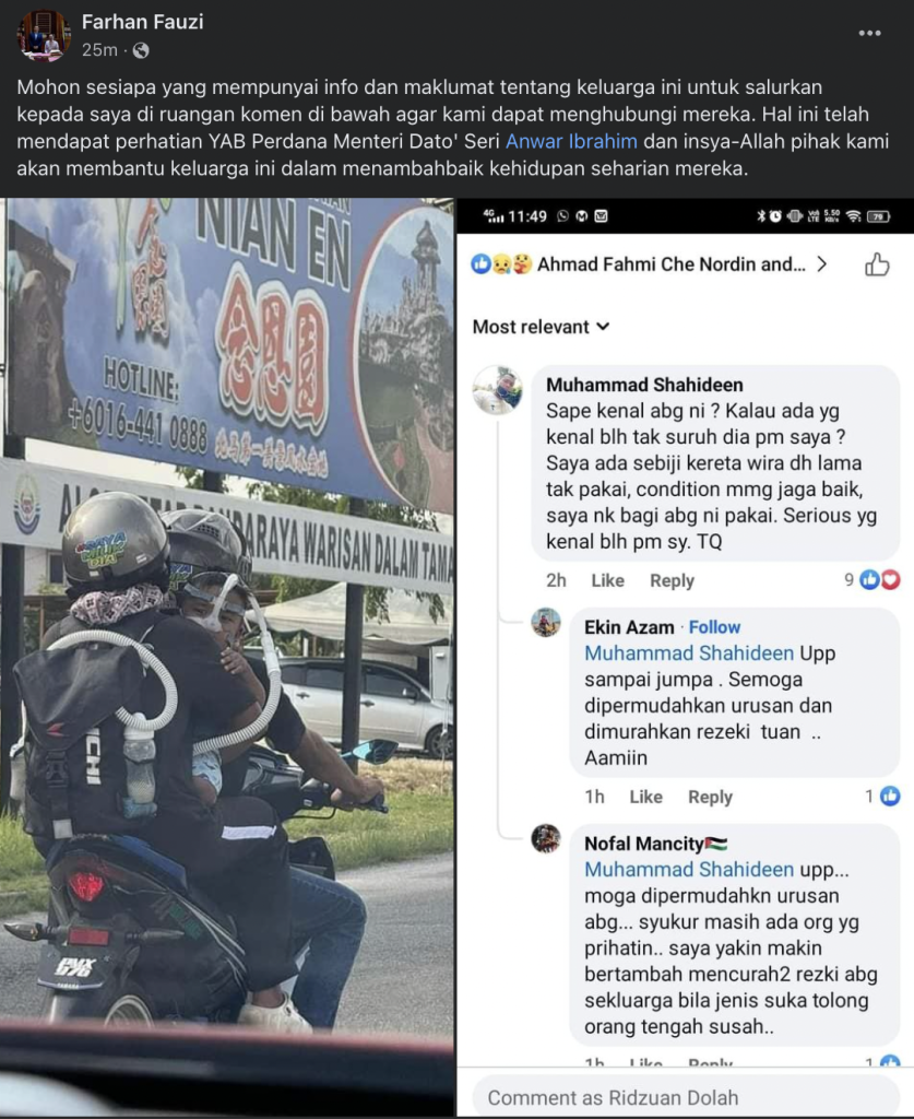 “Insya-Allah, pihak kami akan membantu keluarga ini dalam menambah baik kehidupan seharian mereka,” katanya menerusi hantaran di Facebook miliknya.