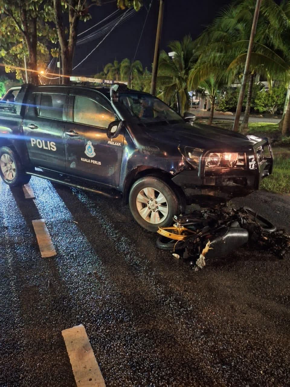 KANGAR: Seorang anggota polis ditahan selepas kenderaan pacuan empat roda milik pasukan yang dipandunya terbabit dalam kemalangan maut di Jalan Persiaran Wawasan, di sini, malam Selasa. Insiden itu meragut nyawa seorang penunggang motosikal berusia 24 tahun, manakala seorang lagi mangsa cedera. Ketua Polis Daerah Kangar, Yusharifuddin Mohd Yusop berkata, kejadian berlaku sekitar pukul 10.20 malam … Continue reading Penunggang Motosikal Maut, Anggota Polis Ditahan Memandu Secara Melulu