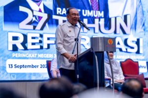 JOHOR BAHRU: Mengakhiri lawatan kerja ke Johor, Perdana Menteri merangkap Presiden Parti Keadilan Rakyat (PKR), Datuk Seri Anwar Ibrahim menghadiri Program Rapat Umum 27 Tahun Reformasi Peringkat Negeri Johor. Majlis yang menghimpunkan saf kepimpinan dan anggota PKR negeri serta pusat itu menjadi medan refleksi perjuangan reformasi yang telah bertapak selama lebih dua dekad. “Reformasi bukan … Continue reading Perjuangan PKR Mesti Berprinsip Demi Malaysia Bermaruah – Anwar