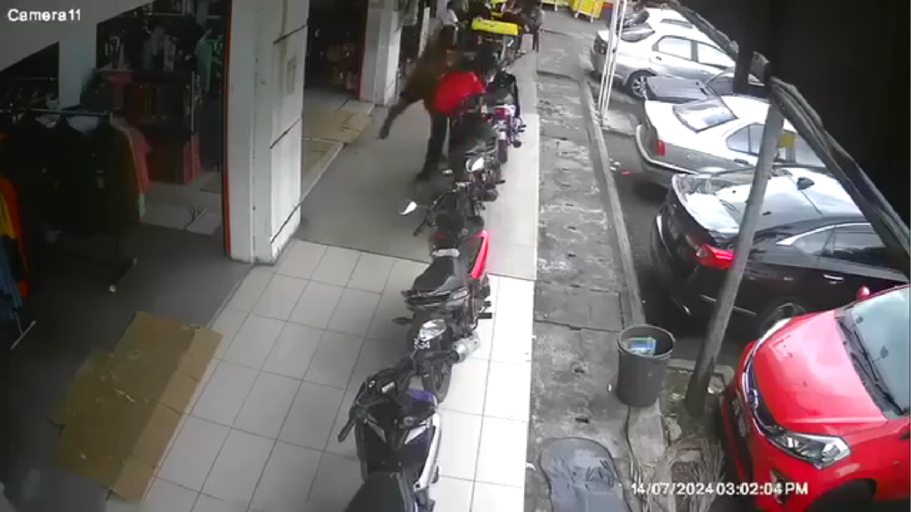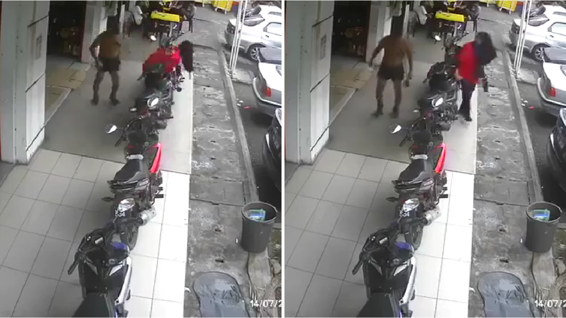 Video keratan berdurasi 22 saat yang diambil dari Kamera Litar Tertutup (CCTV) itu menunjukkan individu berkenaan melayangkan tumbukan ke arah kepala wanita yang sedang berada di motosikal.