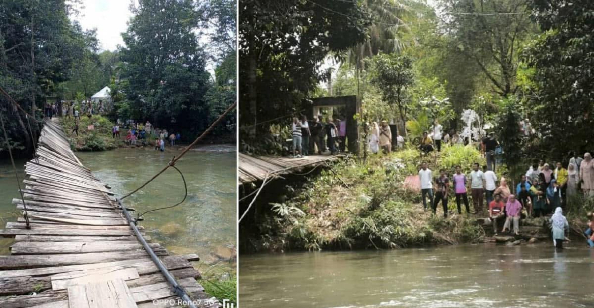 Sebelum ini, hari yang penuh bahagia buat pasangan pengantin baharu bertukar tragedi apabila sebuah titi gantung yang dilalui para tetamu mereka, tiba-tiba runtuh sehingga menyebabkan 50 mangsa terjatuh ke dalam Sungai Chatel Damai, Lata Rek, Kuala Krai, Kelantan pada Khamis.