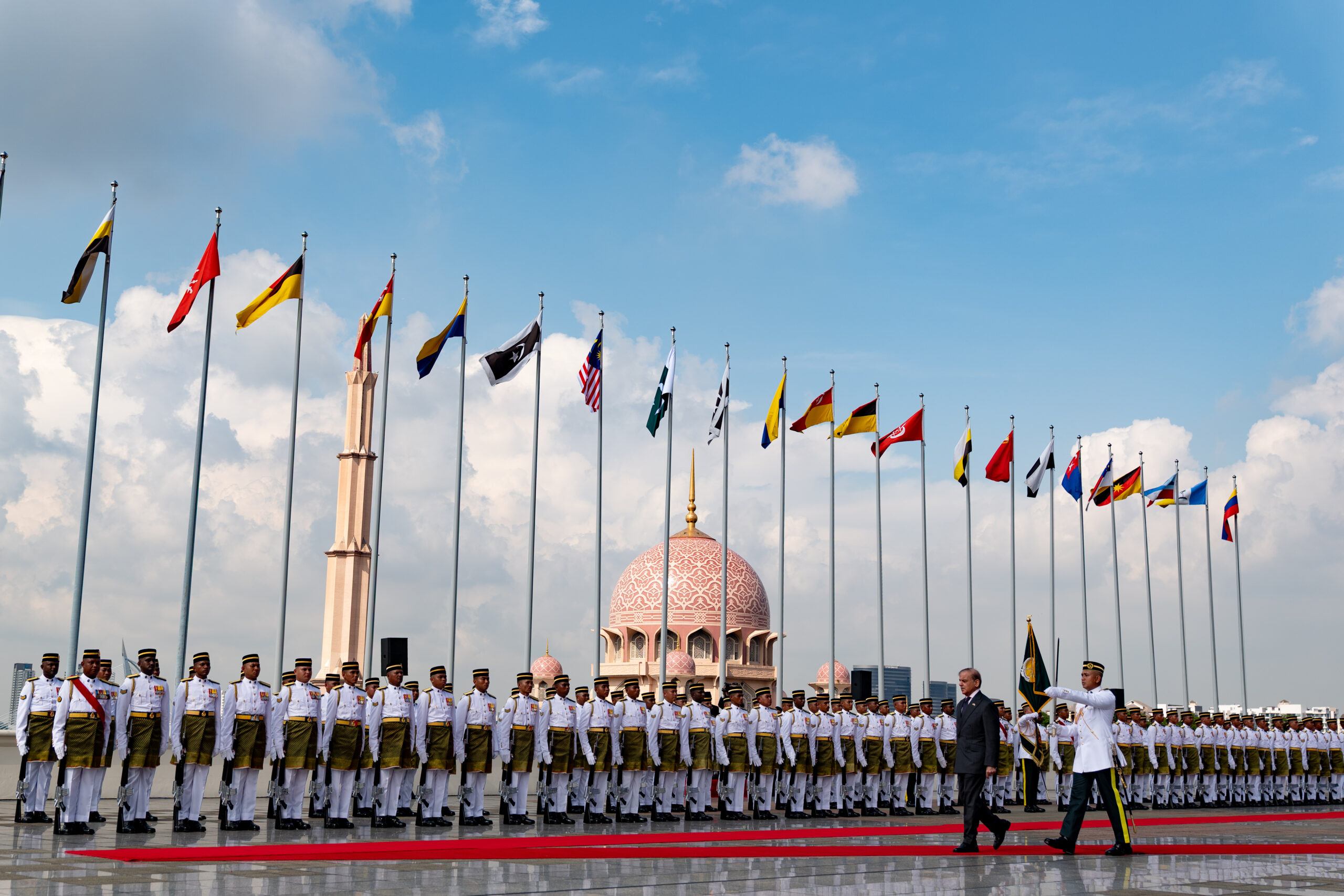 Ketibaan beliau tepat pukul 10 pagi disambut oleh Perdana Menteri, Datuk Seri Anwar Ibrahim, sebelum lagu kebangsaan kedua-dua negara dimainkan sebagai simbol penghormatan diplomatik.