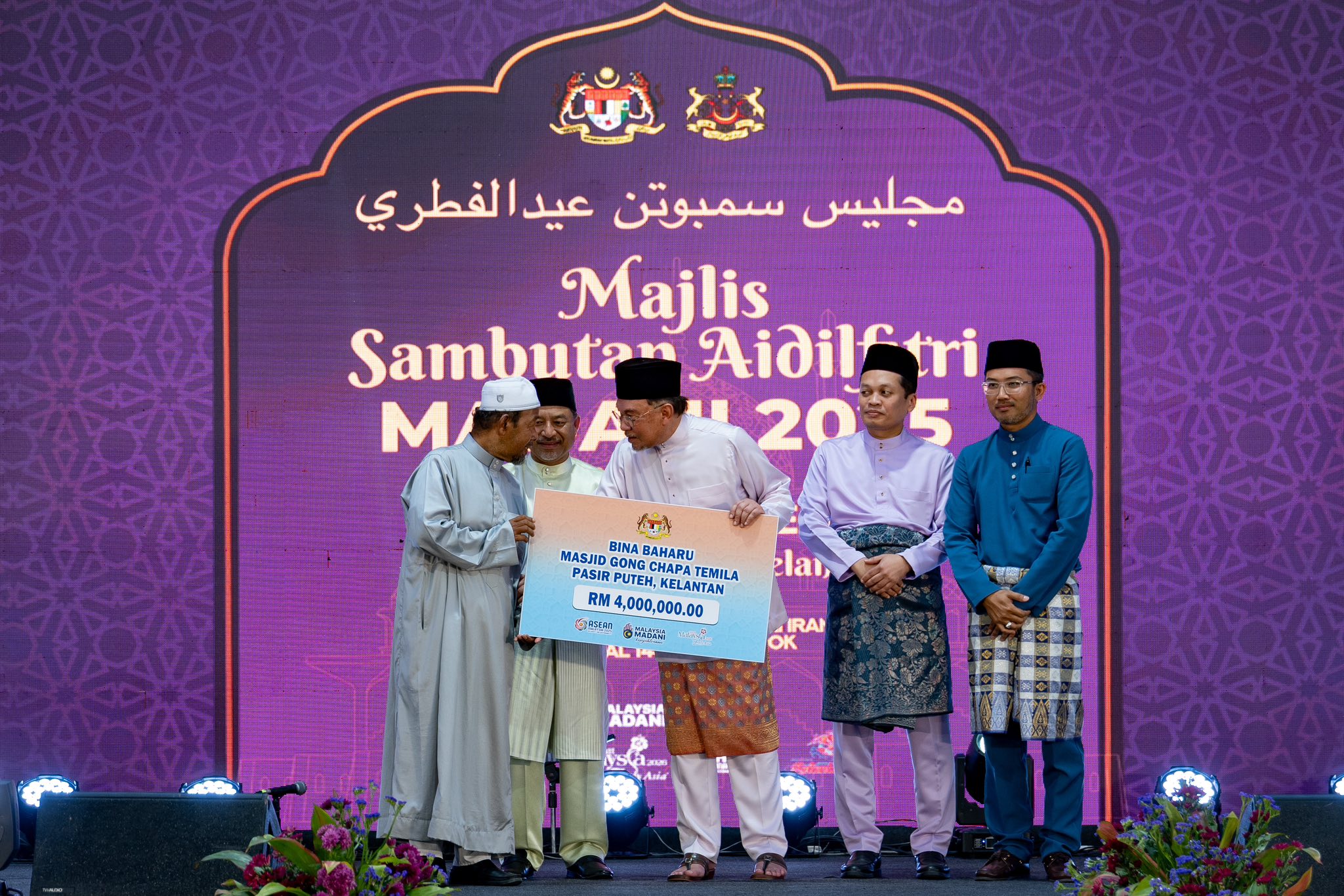 Dalam majlis sama, Anwar turut mengumumkan sumbangan RM4 juta bagi pembinaan baharu Masjid Gong Chapa Temila, Pasir Puteh dan RM800,000 untuk penyiapan Masjid At-Taqwa, Mukim Beris Pak Pura, Bachok.