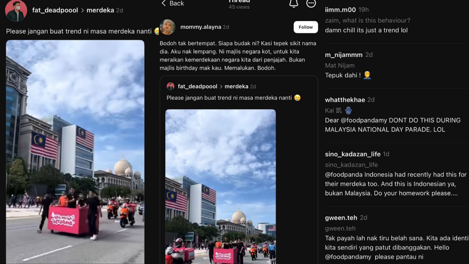 “Dear @foodpanda_my, jangan buat benda ni masa perarakan Hari Kebangsaan Malaysia nanti, lol,” tulisnya.