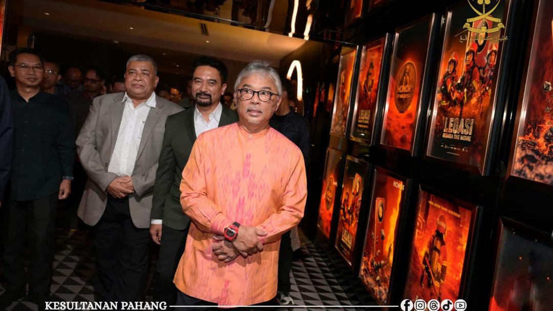 PETALING JAYA: Sultan Pahang, Al-Sultan Abdullah Ri’ayatuddin Al-Mustafa Billah Shah berkenan berangkat ke tayangan khas filem ‘Legasi Bomba The Movie’ di Aurum Theater, The Gardens Mall, malam tadi.