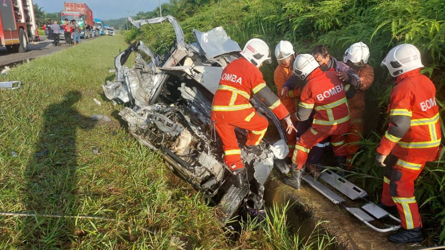 Pasukan bomba mengeluarkan semua mangsa tersepit menggunakan alat pemotong khas.