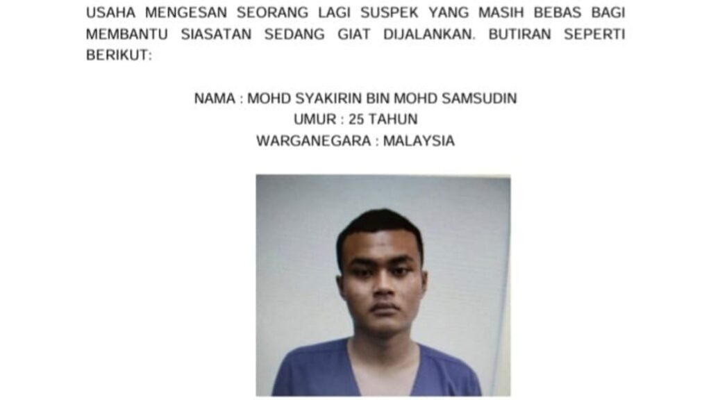 Namun, seorang lagi suspek masih bebas dan kini pihak polis sedang giat mengesan Mohd Syakirin Mohd Samsudin, 25, warga tempatan.