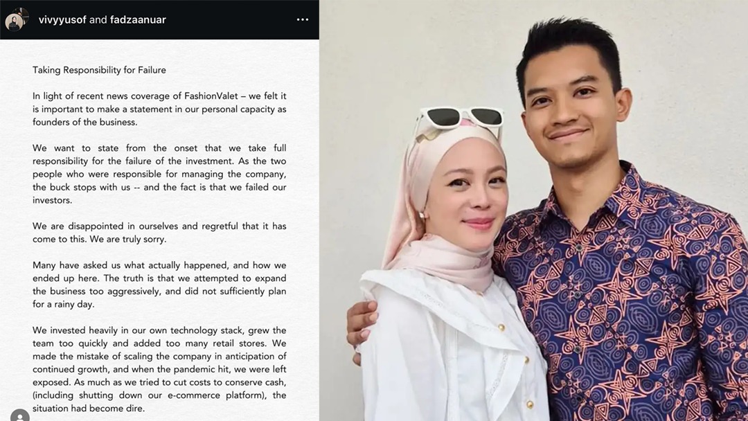 Vivy, bersama suaminya, Fadza Anuar, mengakui bahawa mereka bertanggungjawab sepenuhnya atas kegagalan syarikat mereka.
