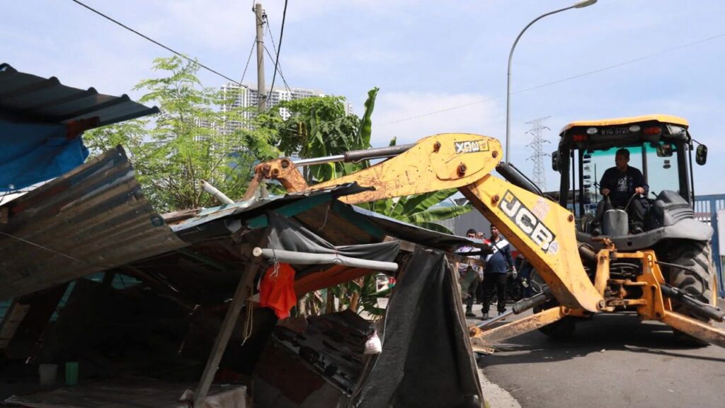 Faizal turut mengarahkan anggota yang terlibat melakukan kerja-kerja pemotongan dan pengalihan pokok menggunakan peralatan khas.