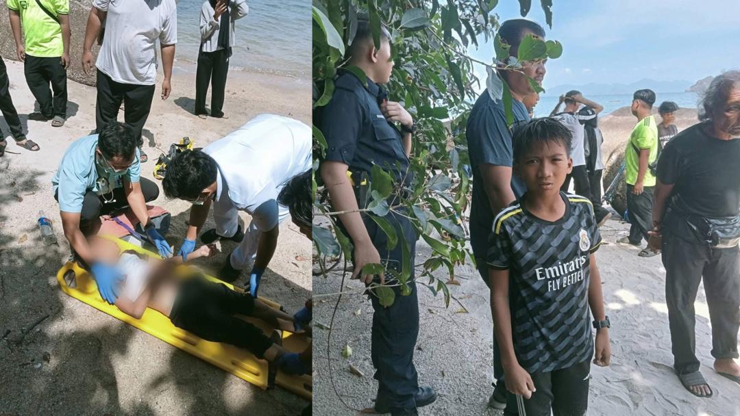 Seorang rakannya yang berusia 10 tahun dipercayai tergelincir dari kawasan berbatu lalu terjatuh ke dalam laut.